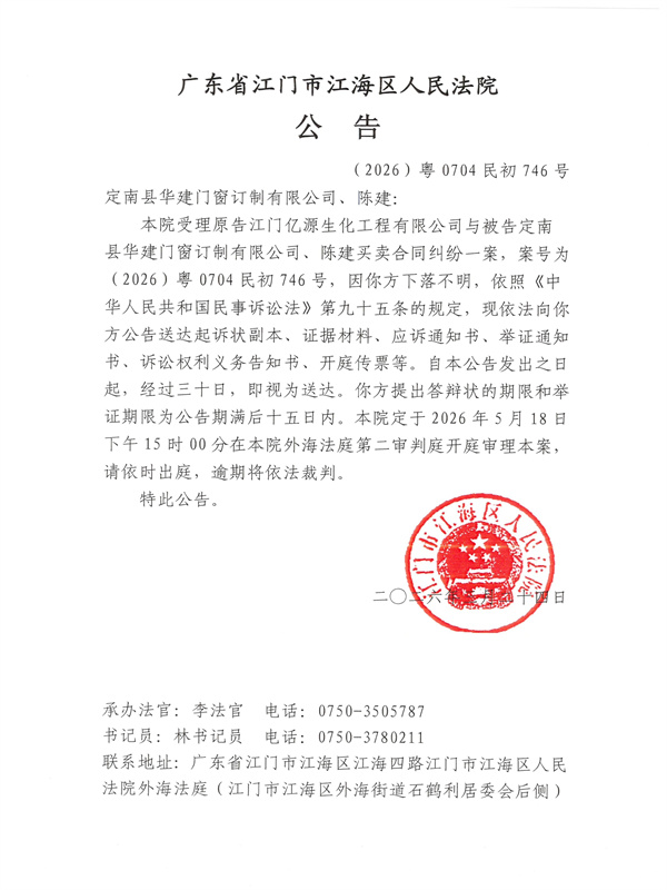 公告(2026)粤0704民初746号