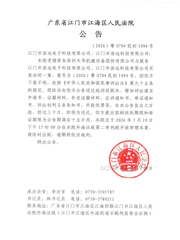 公告(2026)粤0704民初1094号