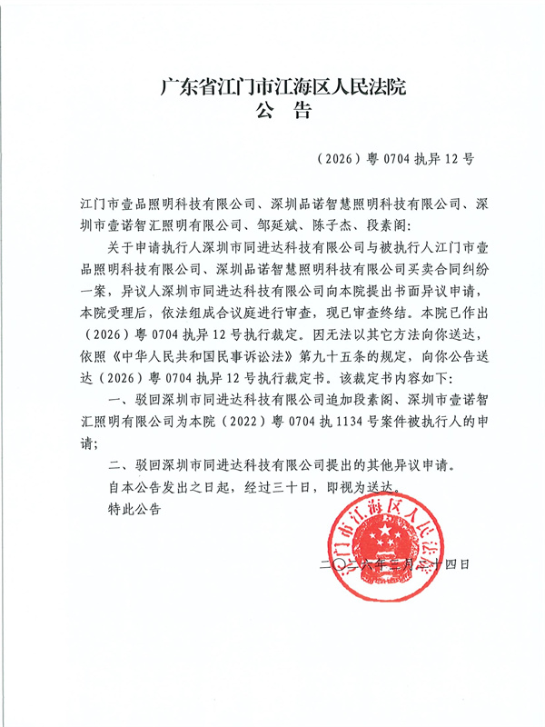 公告(2026)粤0704执异12号