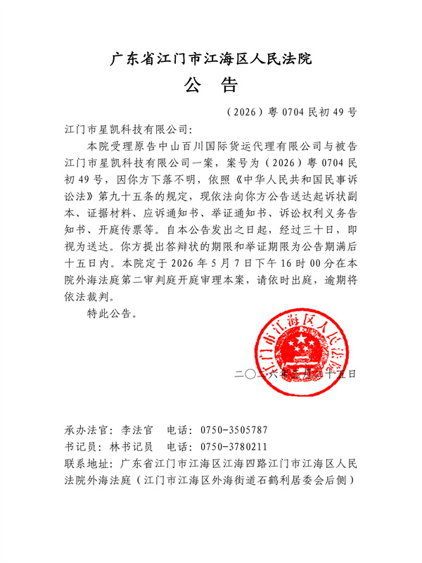 公告(2026)粤0704民初49号