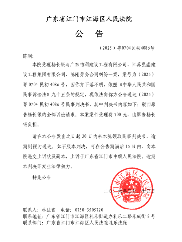 公告(2025)粤0704民初4086号