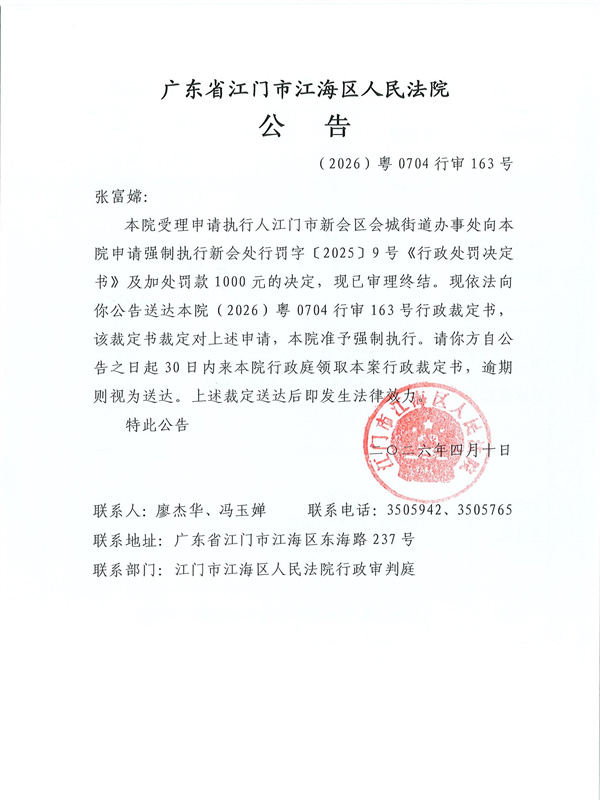 公告(2026)粤0704行审163号