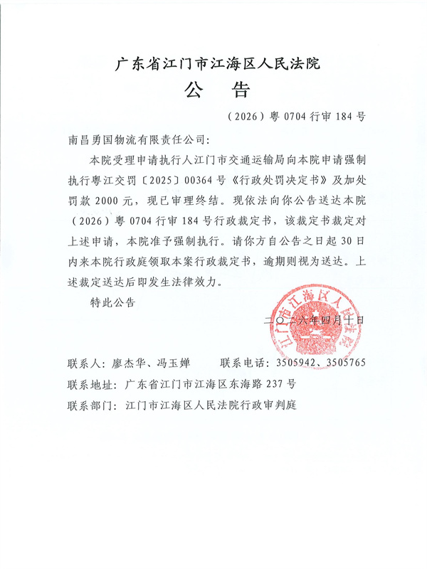 公告(2026)粤0704行审184号